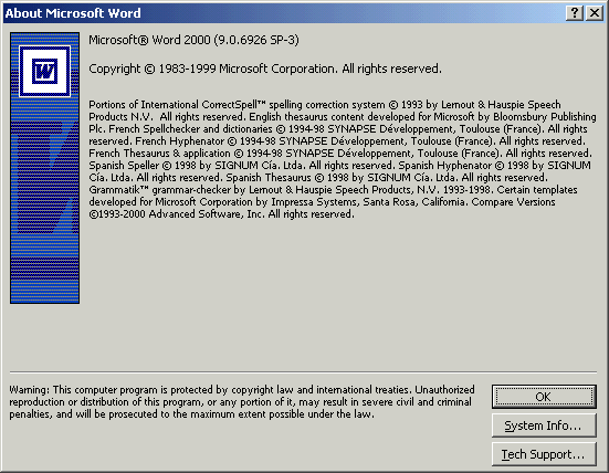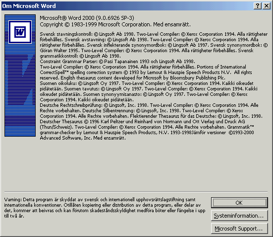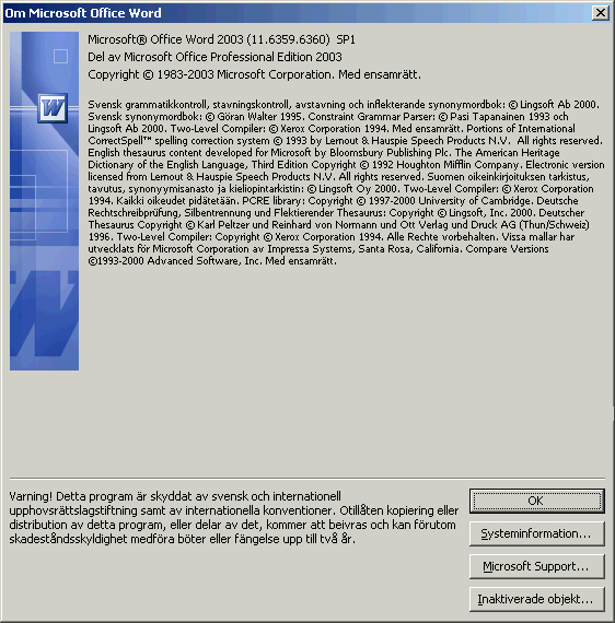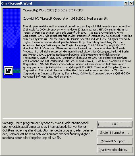 Office/XP kallas även Office 2002 eller version 10. Det skulle kunna se ut som bilden nedan.